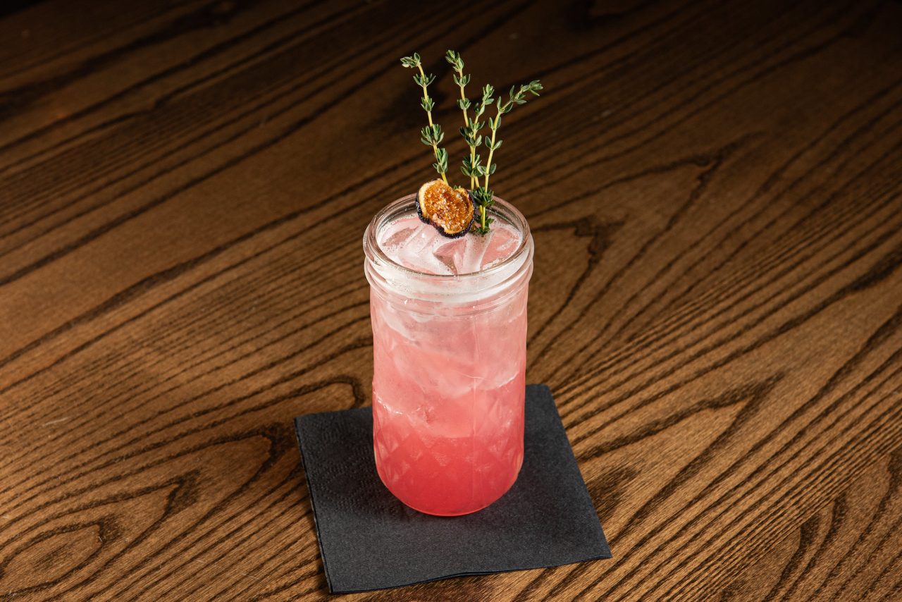 Our seasonal twist on a classic Collins! McQueen Violet Fog Gin, house-made fig syrup, lemon juice & soda water. Garnished with a dehydrated fig & thyme sprig