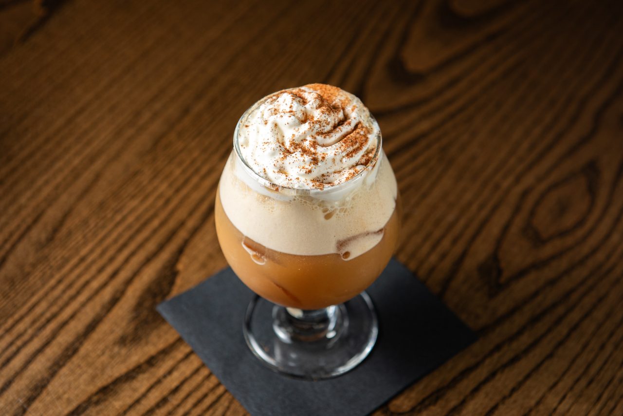 You’re sure to be head-over-heels for our version of a PSL. Made with Espresso Vodka, Licor 43, Mozart Pumpkin Creme, cold brew, & allspice maple syrup. Topped with pumpkin cold foam & a sprinkle of pumpkin spice!
