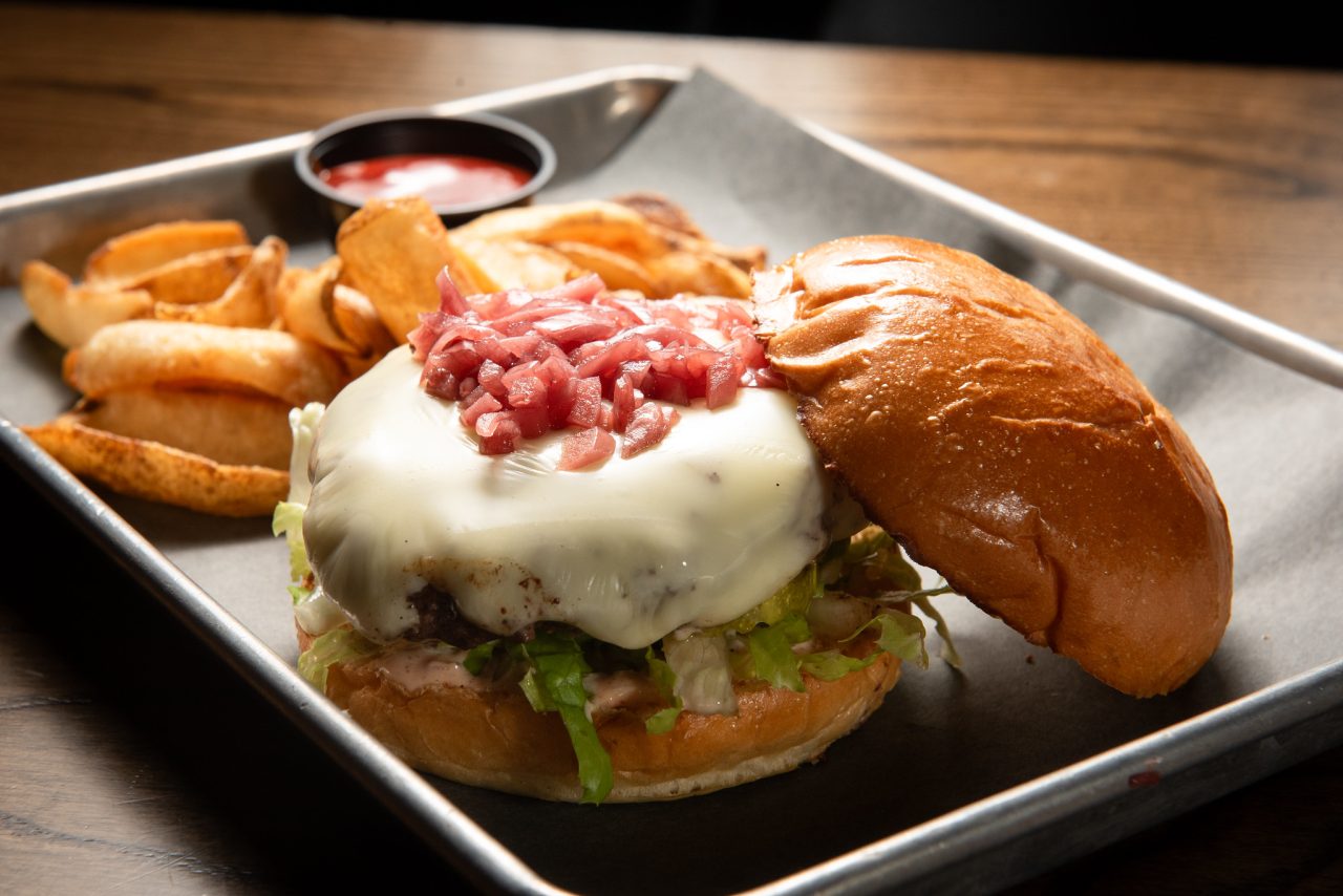 American cheese, pickles, shredded lettuce, pub sauce, & pickled onions